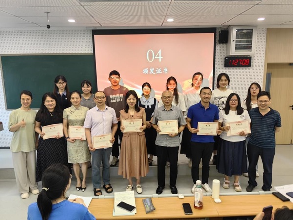 7月12日,活动闭幕式隆重举行。闭幕式上,8名由各个小组推选出的优秀同学代表依次登台,进行了精彩的教学成果展示。同学们扎实的专业功底、日渐娴熟的教学技巧以及蓬勃的教育热情赢得了现场阵阵掌声。指导老师随后对活动进行了全面总结,高度肯定了学员们的努力与进步,并提出了未来发展的宝贵建议。2023级辅导员张伽伽老师代表学院作闭幕致辞,勉励同学们将所学所悟内化于心、外化于行,在未来教育道路上坚定前行。闭幕式最后,学院为无私奉献的指导老师们颁发了荣誉证书和聘书,表达诚挚谢意。
