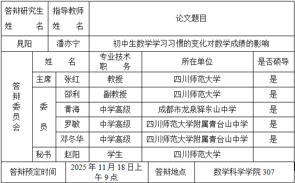 华体会体育·官方网站2025年秋季研究生学位论文答辩公告(第四期)